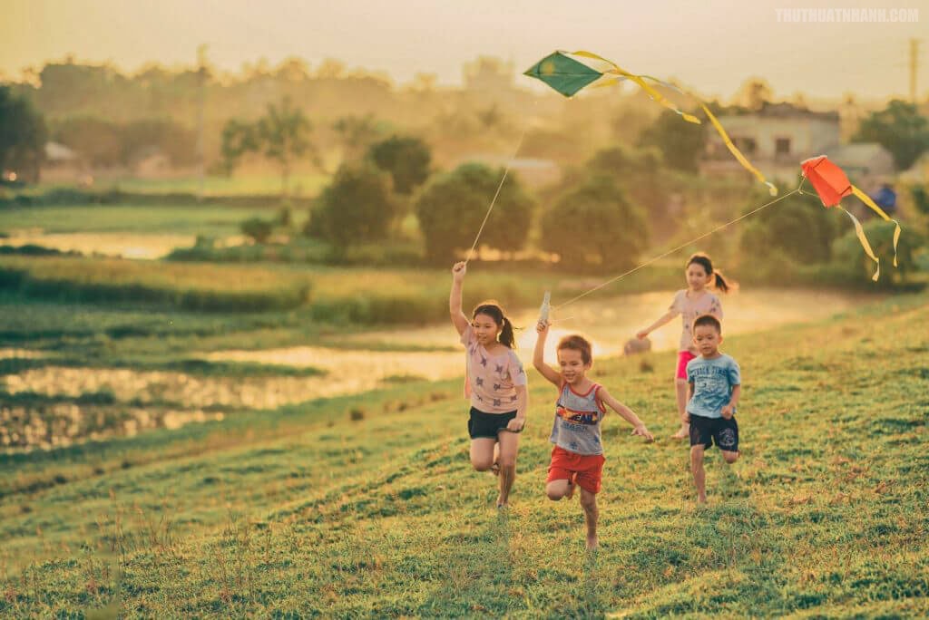 Đi thêm một đoạn là gặp lũ bạn cũ. Tôi nhận ra chúng qua dáng chạy, qua tiếng gọi í ới và mùi bụi đất tung lên mỗi lần chân ai đó đạp mạnh. Lũ bạn ấy giờ cũng đã đi đâu mất, chỉ còn trong ký ức. Ngày ấy, chúng tôi chơi đủ trò — nhảy lò cò, đánh bi, bắn chun, làm “siêu nhân” cứu thế giới giữa bãi đất trống. Tôi là đứa hay nhường nhịn nhất trong đám, chẳng phải vì hiền lành gì, mà vì tôi sợ bạn bè giận. Tôi để ý đến từng nét mặt, từng cái nhăn mày của tụi nó, chỉ mong ai cũng vui. Nhưng trẻ con mà — giận nhanh, quên cũng nhanh. Có khi vừa tranh bi với thằng Tâm, nó tức khóc, tôi luống cuống dỗ mãi, vậy mà lát sau nó lại rủ tôi đi bắt cào cào. Lúc ấy tôi mới hiểu, hóa ra lòng người ta, nhất là trẻ con, giống như mưa rào mùa hạ — đến nhanh, tạnh cũng nhanh, chỉ còn lại mùi đất sau cơn mưa, vừa tươi vừa yên. Cũng ngày hôm đó, tôi nhớ mình đang chơi đánh bi, cúi rạp người xuống, mắt dán vào hòn bi ve xanh biếc như giọt nước. Tôi ngắm nghía thật kỹ, lấy đà, rồi búng mạnh. Hòn bi lăn một vòng rồi chạm nhẹ vào bi của thằng Phong. Tôi thắng! Tụi nó la ó, còn tôi cười đến chảy nước mắt. Trong khoảnh khắc ấy, tôi không nghĩ đến gì khác ngoài tiếng cười vang vọng giữa khoảng đất trống, giữa nắng vàng rát vai. Đó là lần hiếm hoi tôi quên mất việc phải làm người “không làm ai buồn”. Và cũng là lần cuối cùng tôi nhớ rõ cảm giác của niềm vui trọn vẹn đến vậy.